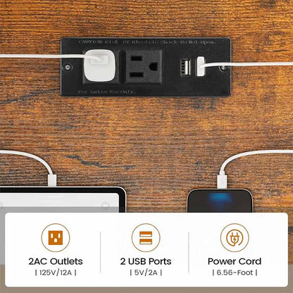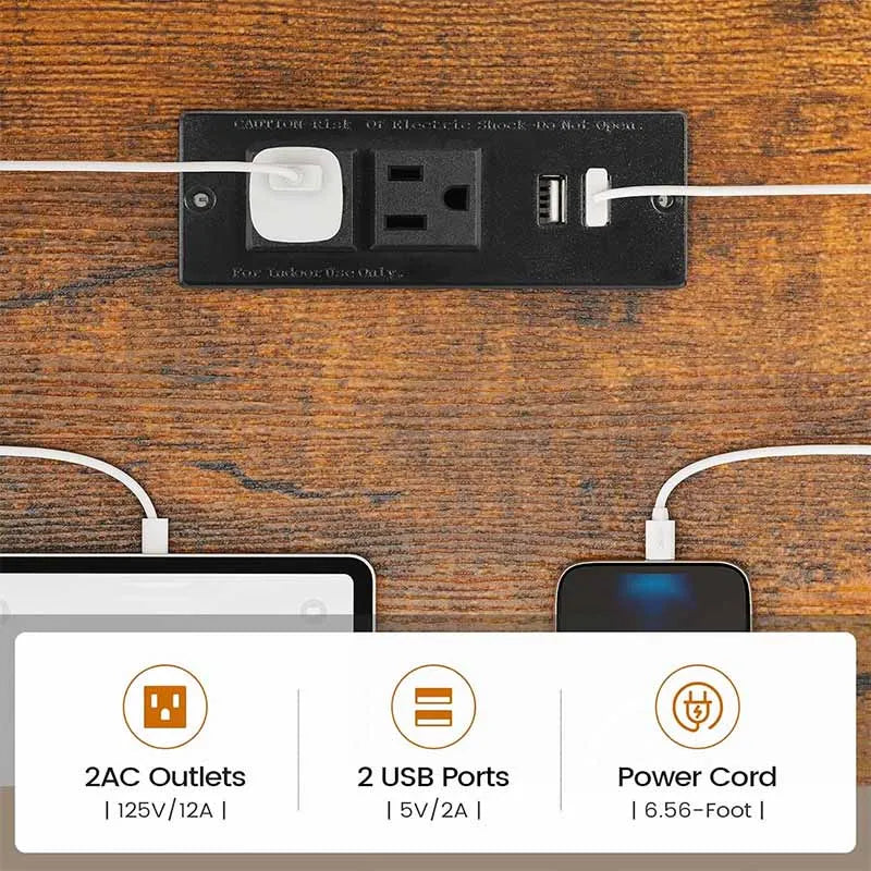 Smart LED Lights & Charging Ports: Features RGB LED light strips with 60,000+ colors and a music sync function, plus built-in outlets and USB ports for easy device charging.