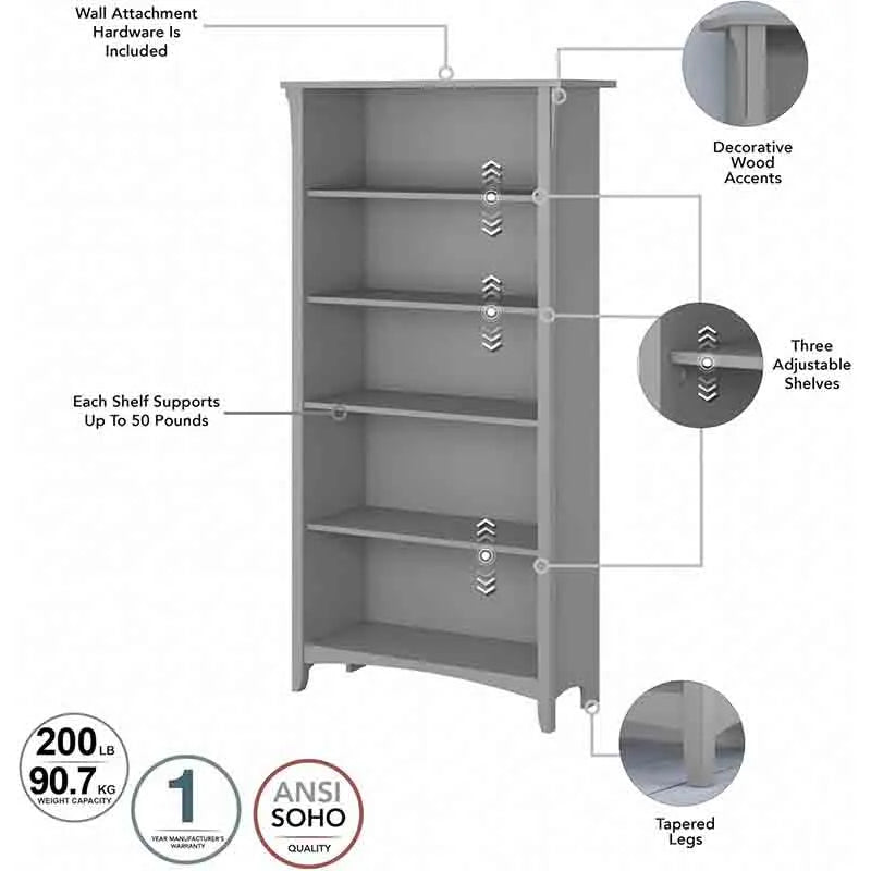 Flexible Storage & Display: Two fixed shelves provide stability, while three adjustable shelves accommodate items of various sizes. Each shelf supports up to 50 lbs.